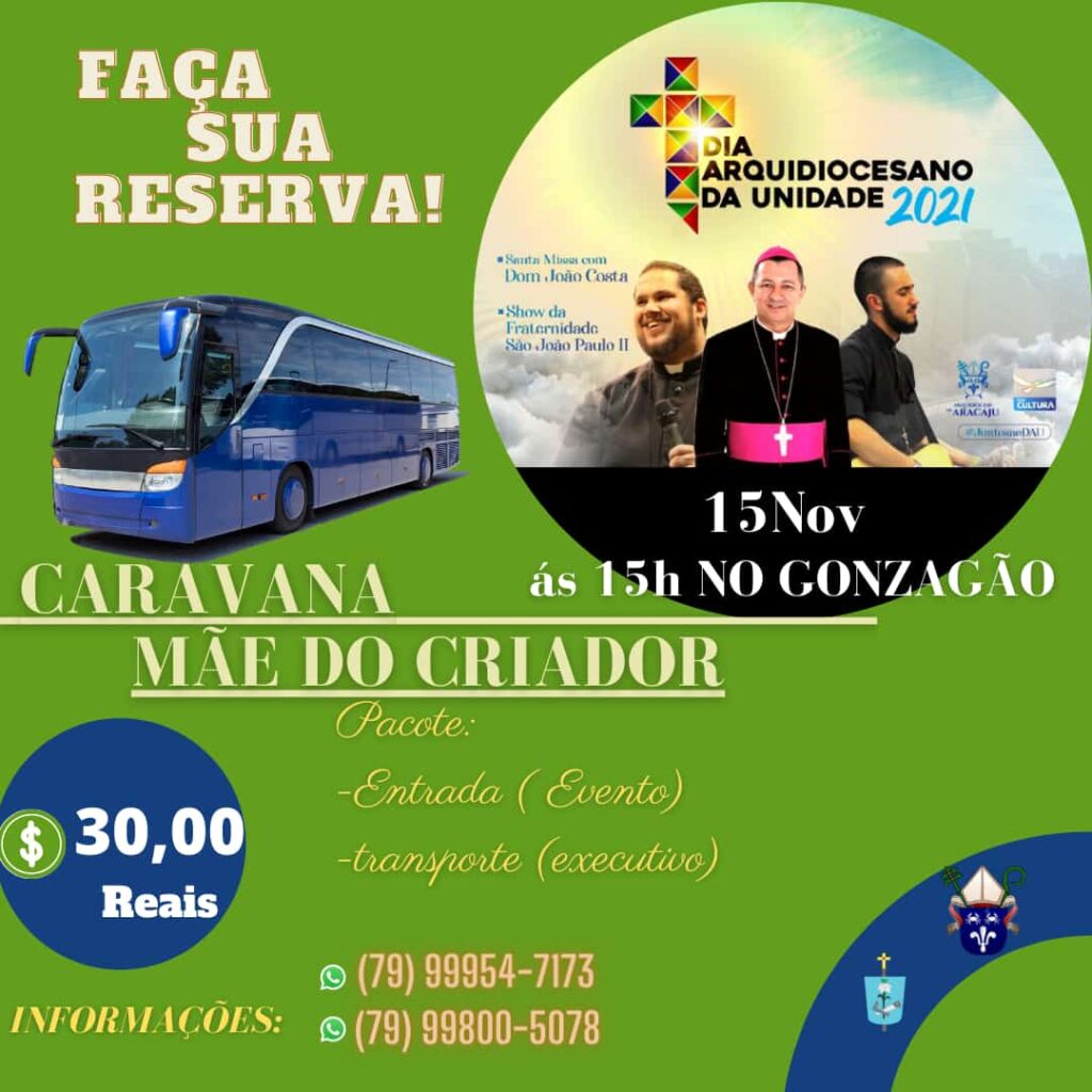Sendo assim, para melhor organizar, estamos divulgando a “Caravana Mãe do Criador” com destino ao Dia Arquidiocesano da Unidade, no valor de R$ 30,00. A concentração será aqui na Paróquia Santa Lúcia 14h, participe conosco.