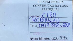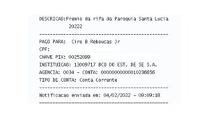No último dia 04 de fevereiro, o ganhador do Sorteio da Rifa do Salário Mínimo, Ciro Rebouças (bilhete premiado de número 390) recebeu seu prêmio!! O pagamento foi feito via PIX, pelas mãos de nosso Pároco Pe. Alan.